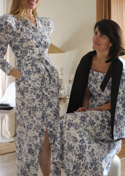 Its buttoned design will allow you to adapt it to your style. Handmade in our atelier, it is made of this wonderful blue Toile De Jouy Liberty fabric in 100% cotton.