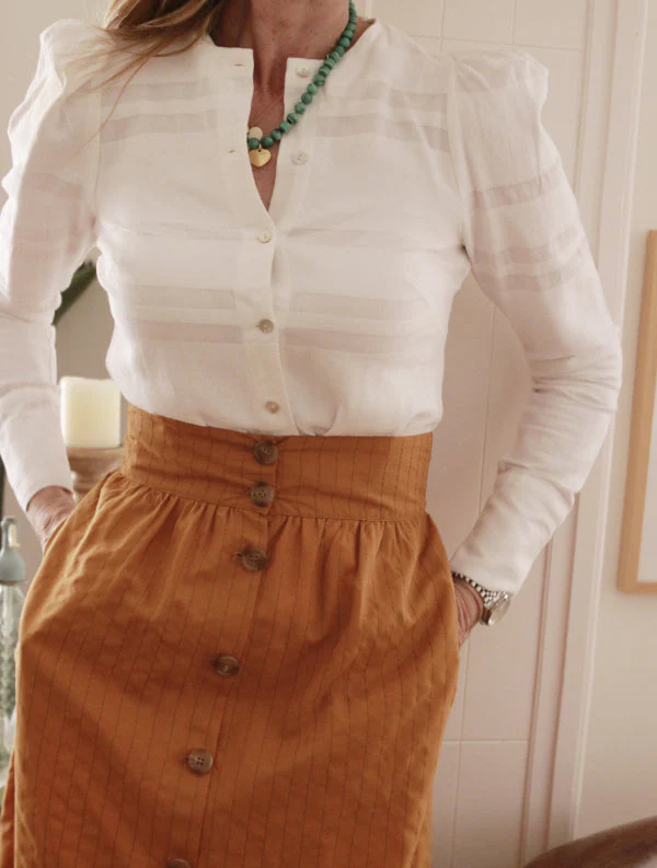 High waist, pockets, buttons and the perfect lenght. Enjoy our newest design and wear it with the Nina Blouse or one of our sweaters.