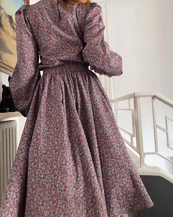 The Kelly skirt is handmade in our atelier with an amazing Liberty London in black and little red and blue flowers.